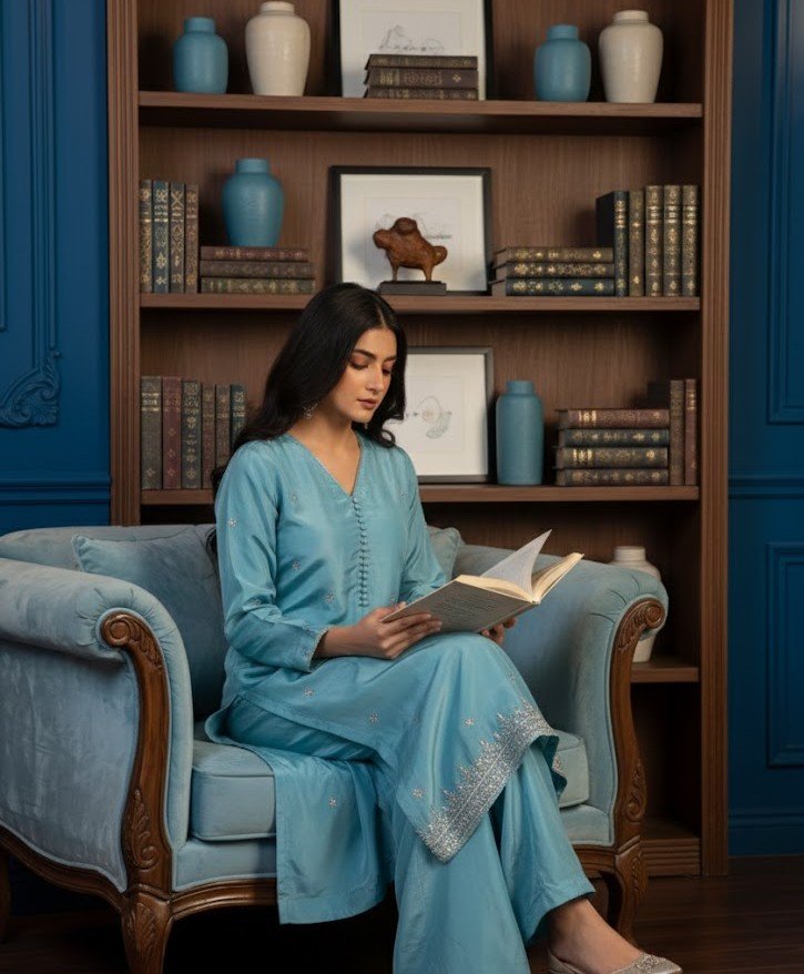 Description: A graceful long shirt crafted from sheesha silk, featuring refined embellishment work that adds a luxurious and elegant touch.