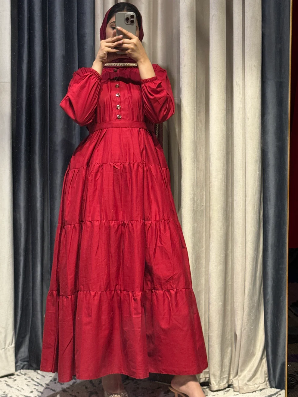 Embrace the allure of timeless sophistication with REGAL MEHROON, a luxurious tiered maxi crafted from premium soft cotton. The deep mehroon red hue exudes regal elegance, making it the perfect statement piece for both festive celebrations and refined everyday wear.